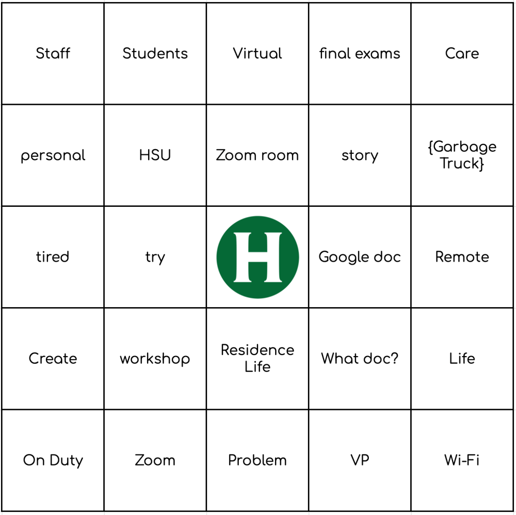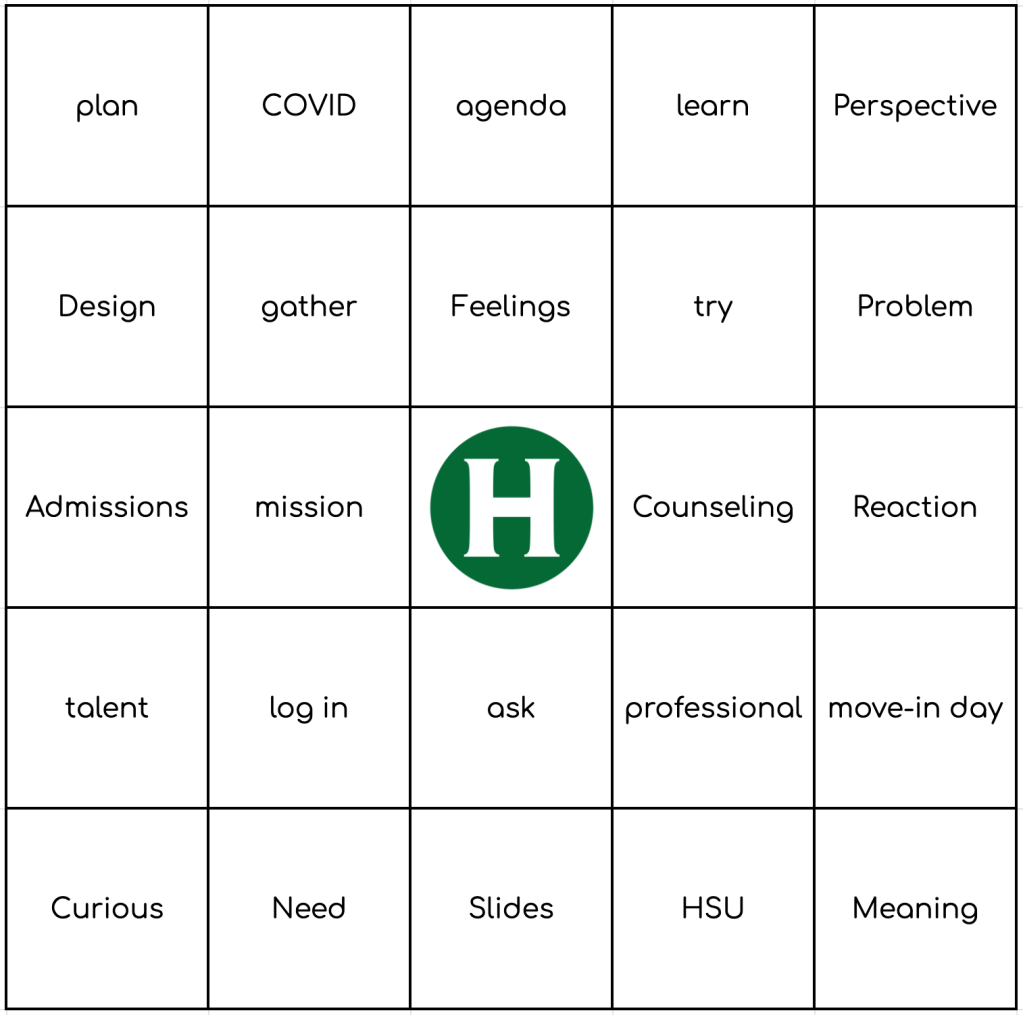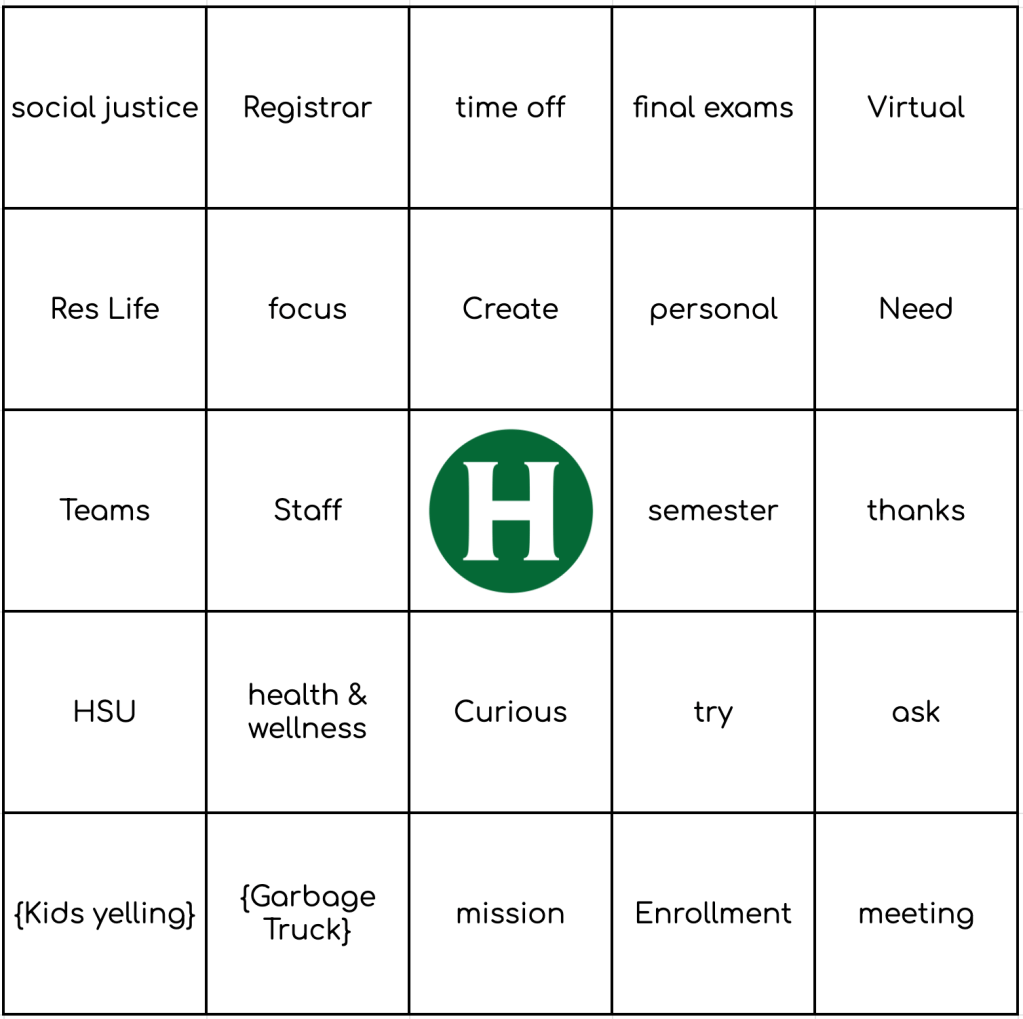 Pick a card, any card — and play! Want to make your own: HSU Bingo Card Generator