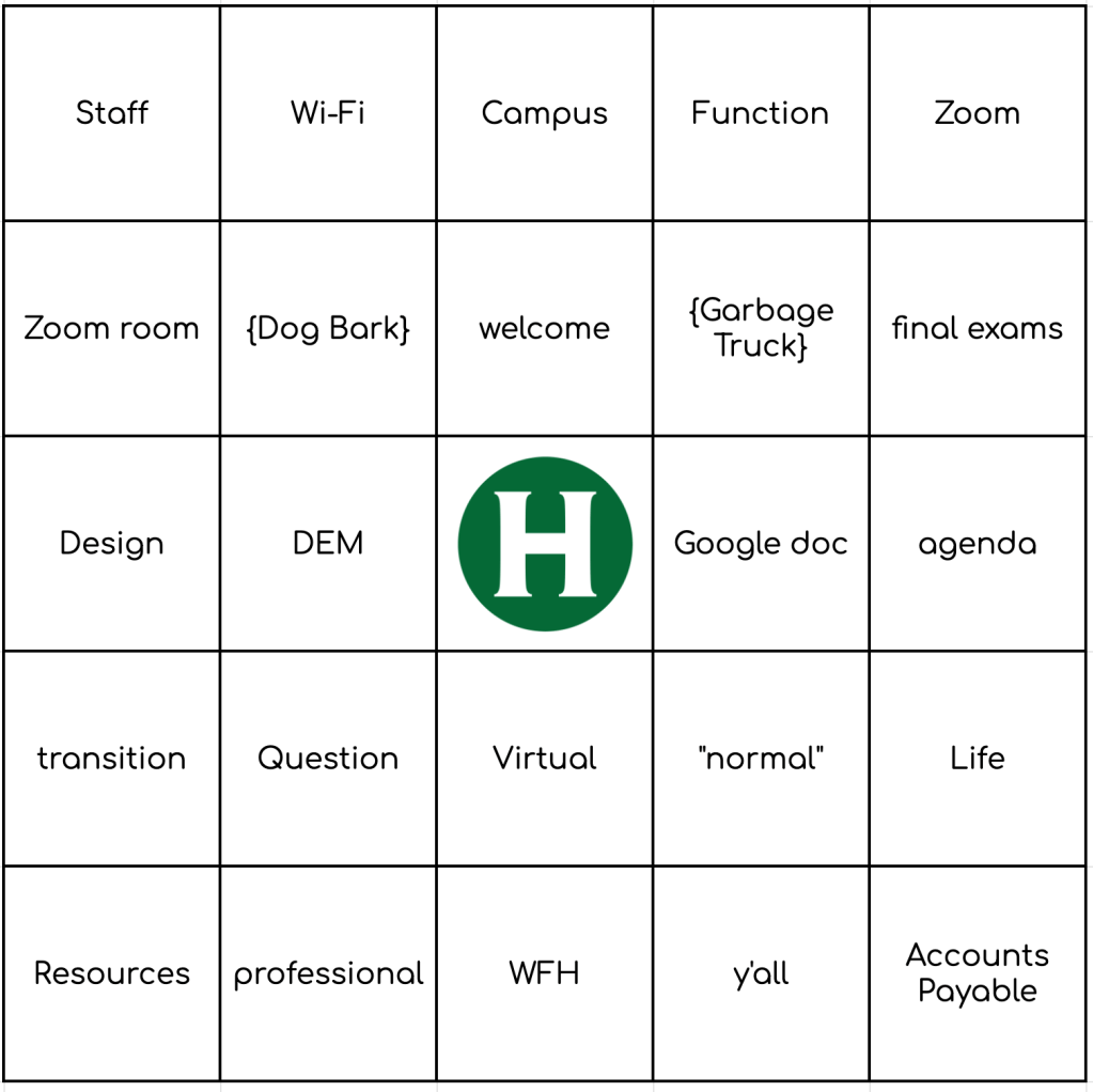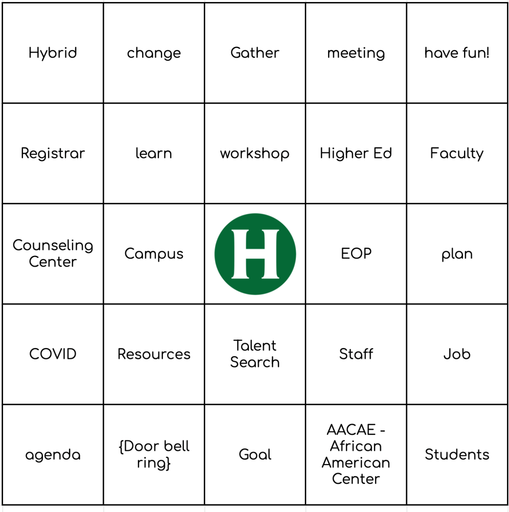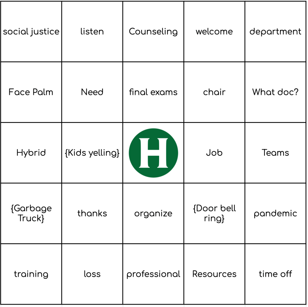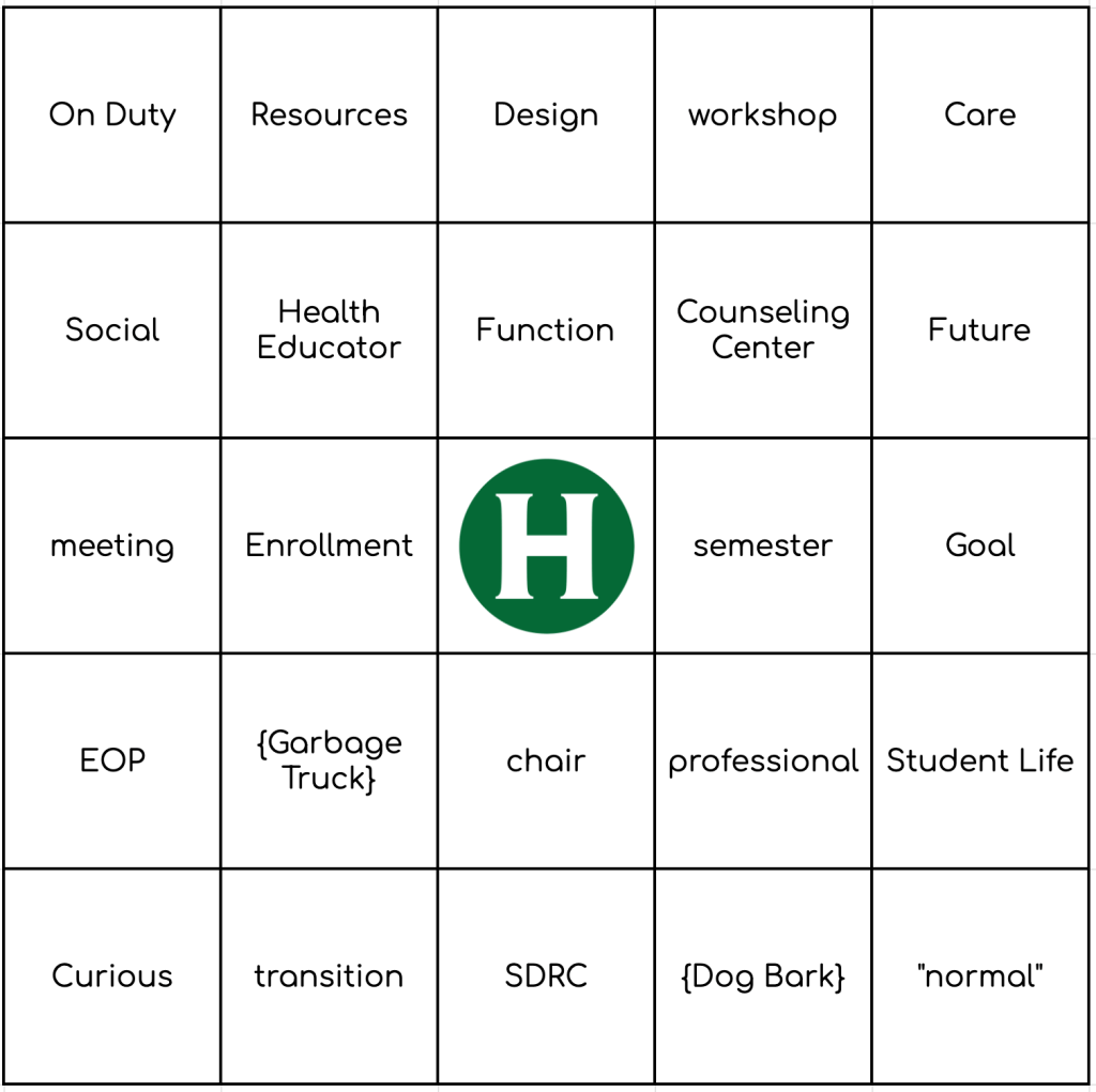 Pick a card, any card — and play! Want to make your own: HSU Bingo Card Generator