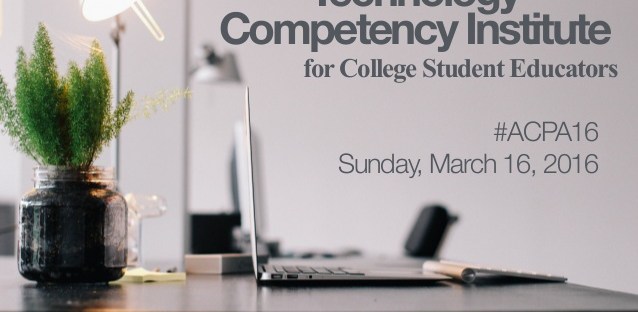 Today (March 6th) we will be facilitating the 1st Social and Digital Technology Competency Institute for College Student Educators (a.k.a. Half-Day Pre-Conference Colloquia H) at 2016 ACPA Convention on Sunday, March 6, 2016 from 1-4:30 pm EST (Palais des Congrès de Montréal, 513D). Here is the agenda for today, if you want to sign up for the event: