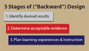 In reviewing the current curriculum, it was apparent that a backward design approach would be the most effective method for this instructional design project. In Understanding by Design, Wiggins and McTighe (2005) identify three key stages for backward design: